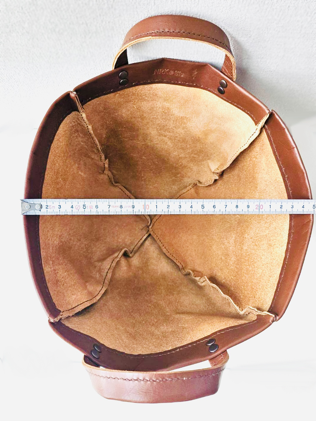 進化を遂げたこのレザーバスケットは、底面がフラットで安定感があるため、観葉植物の鉢カバーとして使ったり、リビングで雑誌やガジェットをすっきり収納したりと、多用途に活躍します。