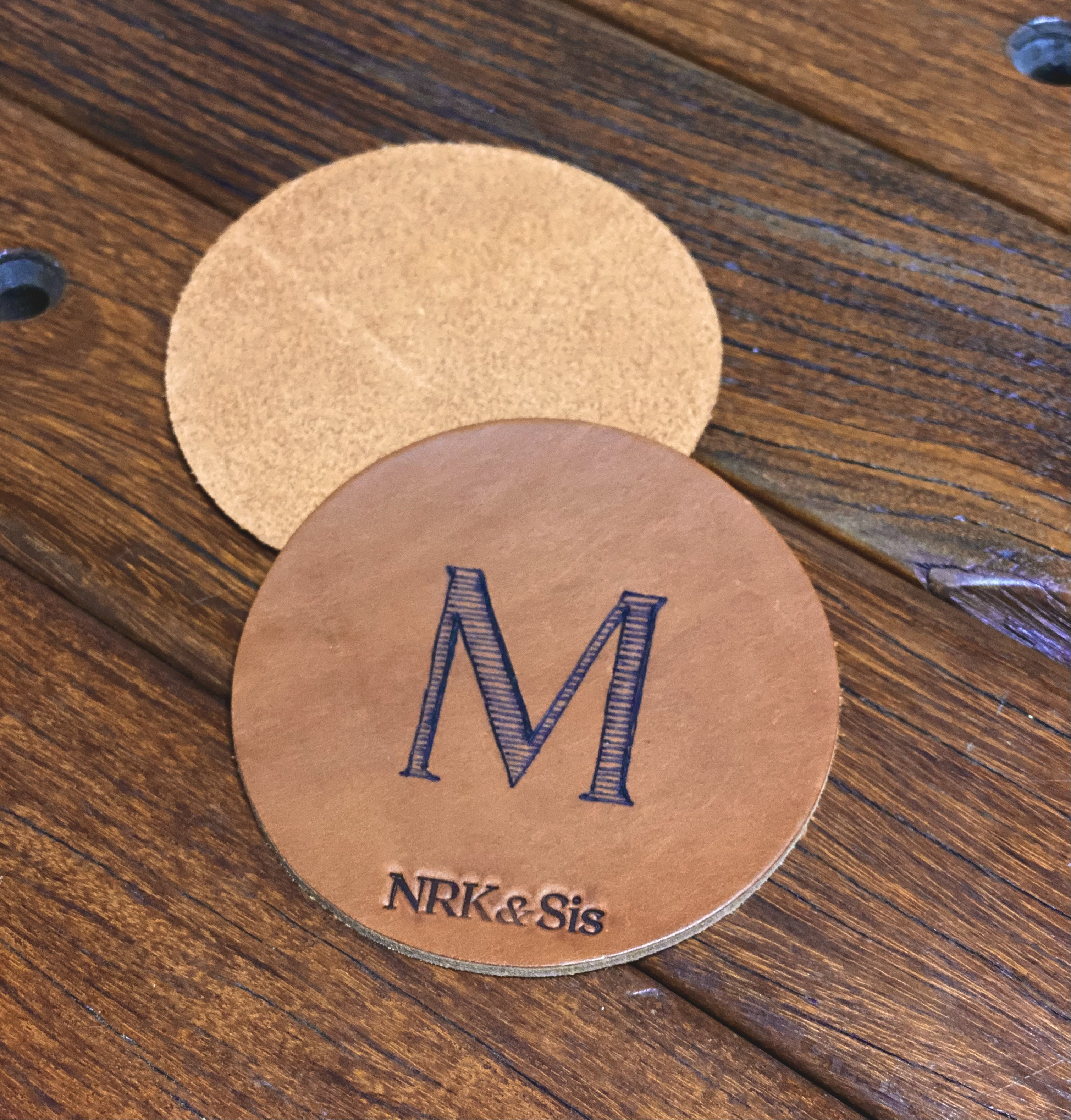鞄にも使用される2.5mmもある厚手の牛革をコースターの為だけにくりぬいた贅沢な1枚作りになっています。